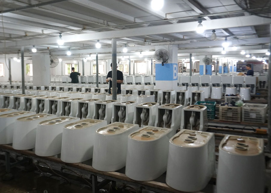 After being heated to 1280 for 15 hours, the ceramic material used in our sanitaryware has an extremely low water absorption rate, which combined with the vitrification process, makes the porcelain body strong and resistant, while making the surface smooth and clean.